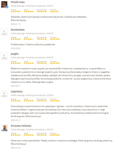 Nori kompleksinio investavimo plano, apimančio skirtingus investavimo instrumentus – akcijas, investicinius fondus, tarpusavio skolinimosi platformas ir kt.