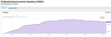 Skelbimai apie trilijonus dolerių, kuriuos esą ketina investuoti užsienio šalys, skamba įspūdingai, bet dauguma šių įsipareigojimų yra tik žodiniai ar seni, dar ankstesnių administracijų projektai. Tai atsispindi ir realiuose duomenyse — JAV gamybos statybų apimtys per metus sumažėjo apie 7%. Kitaip tariant, kol kas tarifai nesukūrė žadėto investicijų srauto.