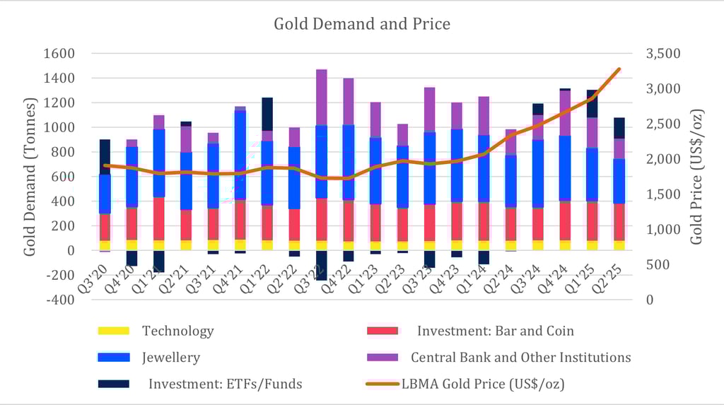 Viena svarbiausių aplinkybių, palaikančių aukso kainą, yra stipri struktūrinė paklausa. World Gold Council duomenimis, pastaraisiais metais pasaulinė aukso paklausa, įskaitant nebiržinius sandorius (OTC), pasiekė istorinius lygius ir artėjo prie 5 tūkst. tonų per metus. Reikšmingą šios paklausos dalį sudaro investicinė paklausa – ETF fondai, fizinio aukso monetos ir lydiniai.