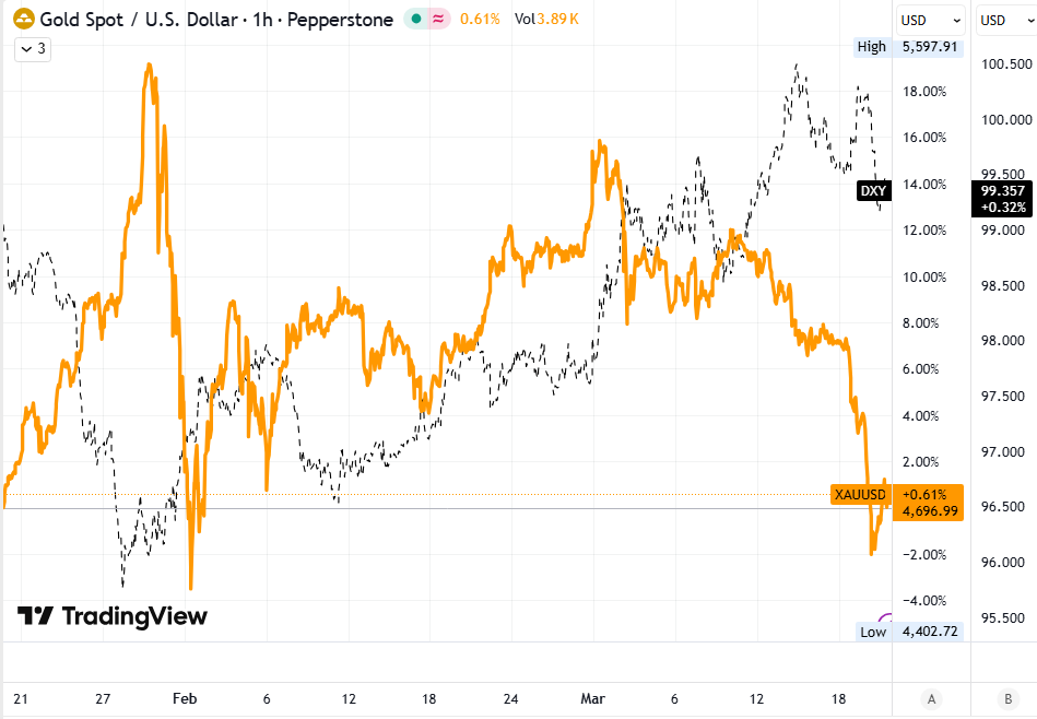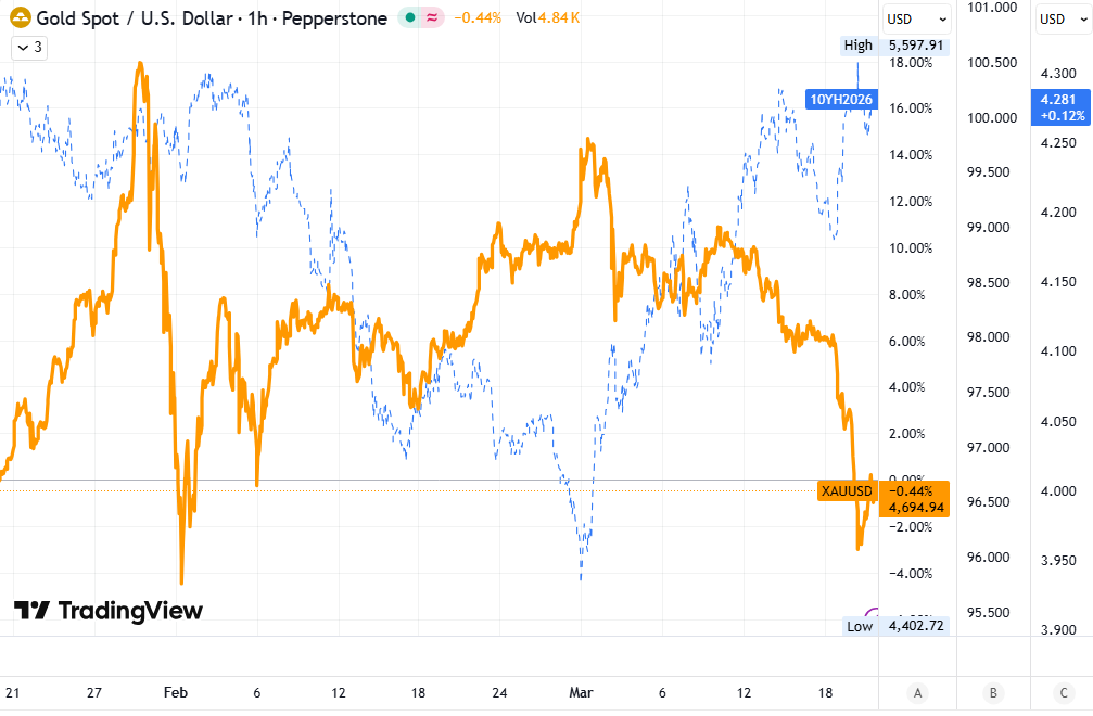 Kai FED pasiuntė griežtesnę žinutę, rinka turėjo pervertinti savo lūkesčius. Kitaip tariant, investuotojai pradėjo labiau tikėti scenarijumi, kad palūkanos išliks aukštos ilgiau. Toks pokytis nėra smulkmena. Jis veikia dolerį, obligacijų pajamingumus, rizikos apetitą ir galiausiai patį auksą.