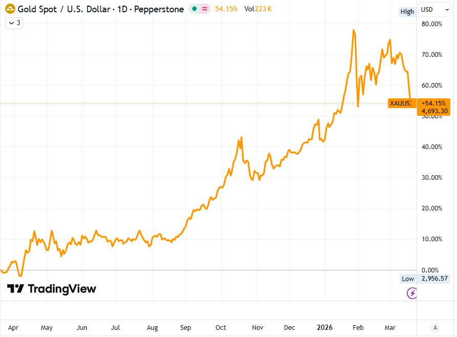 Tačiau kovą rinka parodė ką kita. Nuo visų laikų aukštumų aukso kaina koregavosi maždaug 15%. Toks judesys iš pirmo žvilgsnio gali atrodyti kaip ženklas, kad pasikeitė visa istorija, bet iš tikrųjų tai labiau primena stiprią korekciją po itin staigaus ralio, o ne ilgalaikės krypties lūžį.