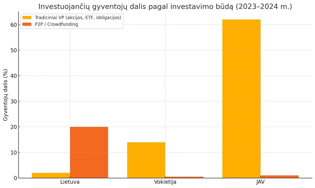 Vos apie 2% gyventojų investuoja į tradicinius vertybinius popierius – ETF, akcijas, obligacijas.