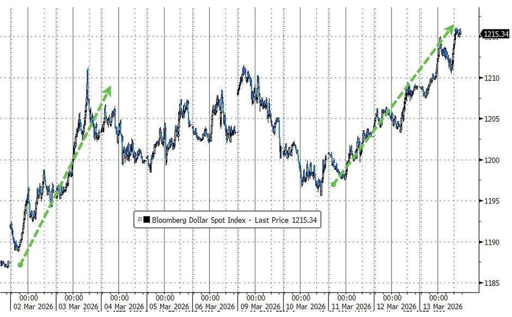 Aukščiau grafikas rodo, kaip doleris stiprėjo prasidėjus konfliktui. Investuotojams tai svarbus signalas, nes valiutų judėjimai dažnai atspindi platesnius kapitalo srautus tarp skirtingų turto klasių ir regionų.